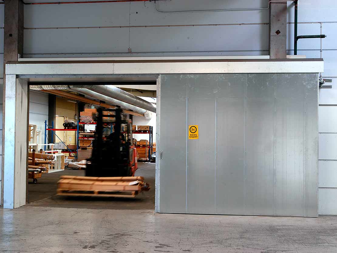 Brannskyveport S88 er vanlig som brannseksjonering der porten åpnes eller stenges kun noen få ganger i døgnet.