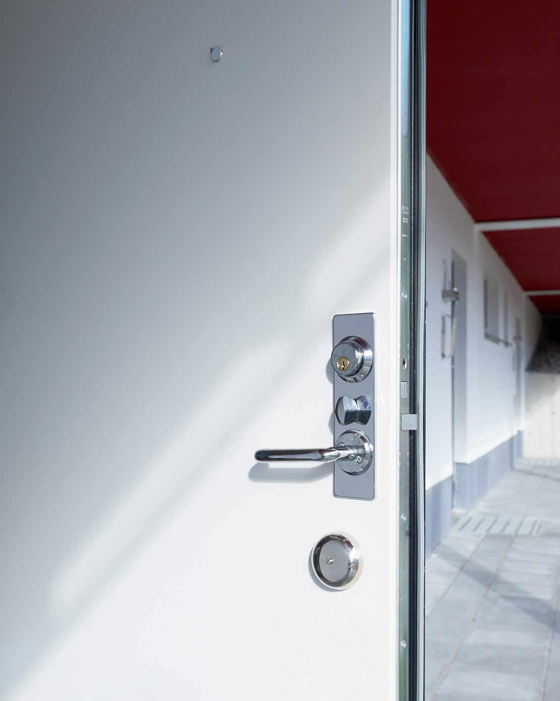 Svalgangsdør Daloc Y33 og Daloc Y43 gir førsteklasses beskyttelse mot regn, vind og kulde samt innbrudd, brann og lyd. De har et estetisk ytre og kan leveres i mange ulike farger eller med tremønstret laminatplate. Dører med laminatplate kan med fordel leveres med tremønstret eller annen overflate på utsiden og hvit innside i leiligheten.